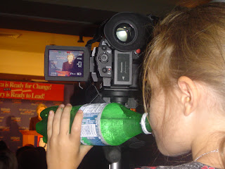 The future is clearly within the broadband video realm, and if you're into news and politics and video and mashing them all up together online, then these are very heady times. I feel like a teenager again whenever I start rolling a frame of videotape - I just have no idea where it's all going to end up. A lot's going to go right to the trash heap of oblivion of course, but there are seemingly endless possibilities with video right now, that even the trash cans are being explored and mined and fretted over! Who knows, maybe even a long subverted, supressed, ignored artistic bent will come over me, and I'll just chuck it all and "do art." Weirder things have happened I suppose. Although I like being a capitalist pig way too much to really ever go with a whole lot of "chucking it all" attitude.